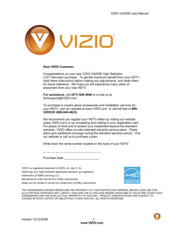 Free Reading vizio va220e user manual Doc PDF